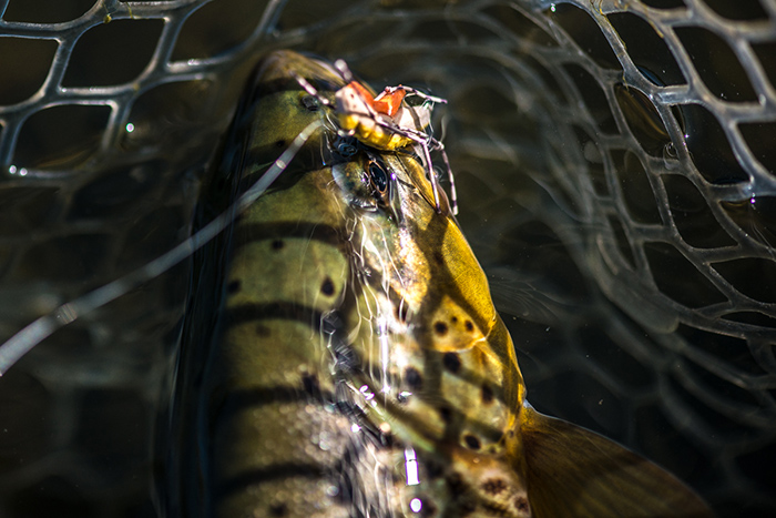 The technique was exhausting to say the list because you were constantly keeping your arm raised and dancing the fly across the surface. It was effective though, Jen was able to get some explosive eats from some large trout. They were hard to pin with the hook, but the last one of the day was a chunky brown and great way to end the evening.