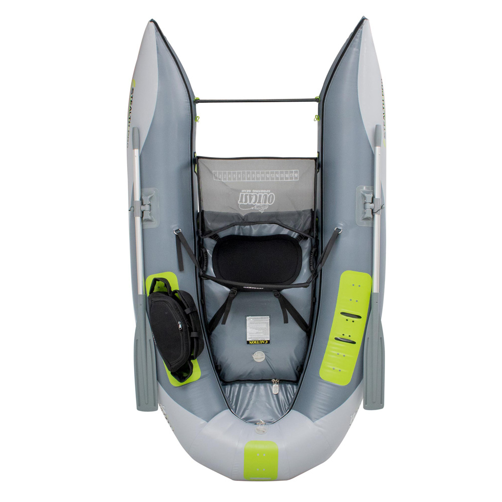 The OSG Stealth Pro from Outcast is perfect for those wanting to just inflate and go. This frameless design features rockered ends to take on big water whether on a river or windy lake. Since there is no frame to assemble the OSG Stealth Pro is simple to reduce line snags and packs down compact. Other features include the Integrated Gear System (IGS) which allows you different options to position gear, rod holders, or an anchor mount. The adjustable seat dials in any angler size and at footbar gives you a place keep your feet out of the water when navigating swift currents. Outcast really changed the pontoon boat game when they designed the OSG Stealth Pro, this is one lightweight, versatile fishing machine!